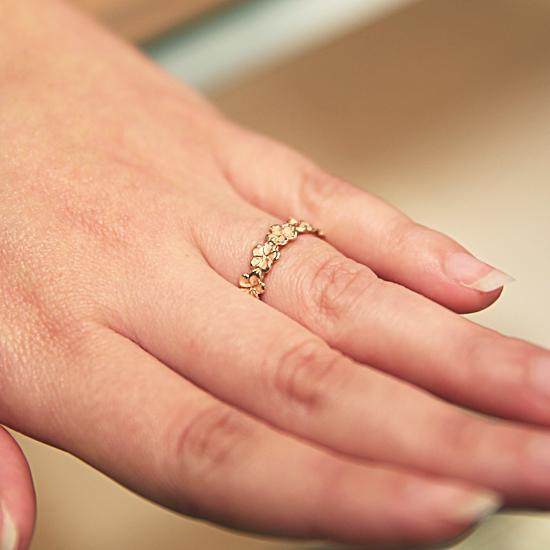 Solid 14K Pink Gold Plumeria Lei Ring Sandblast Polish Edge