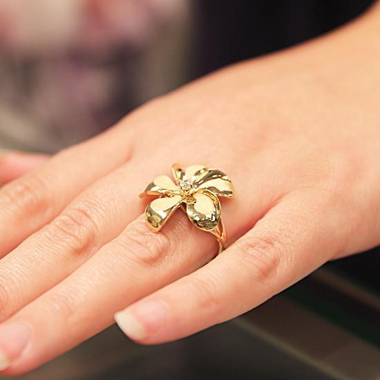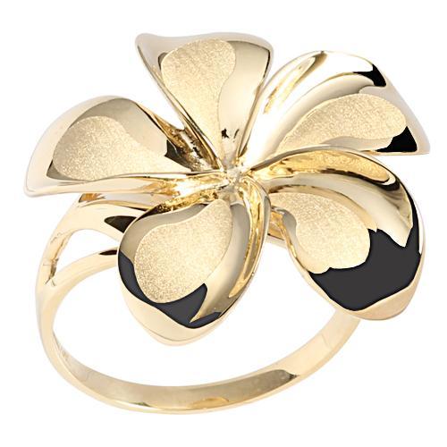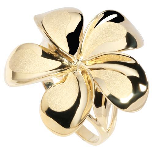 Solid 14K Yellow Gold Plumeria Ring Sandblast Polish Edge