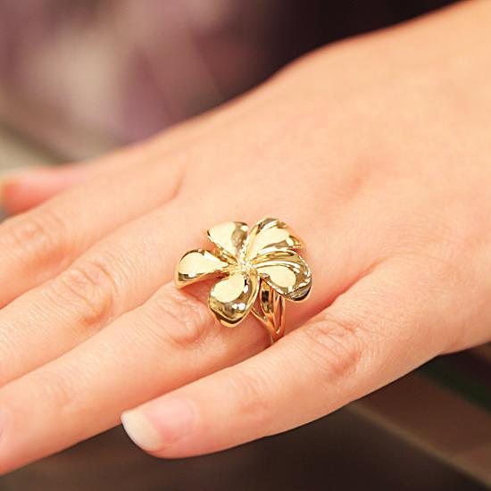 This ring is made with solid 14 Karat Gold, the Plumeria is sandblasted with a high polished edge.