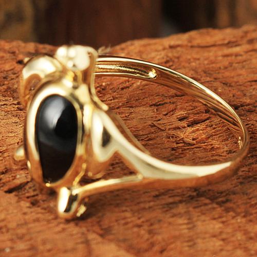 14K Yellow Gold Honu (Hawaiian Turtle) with Black Coral Inlaid Ring