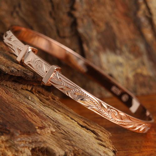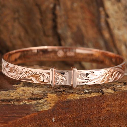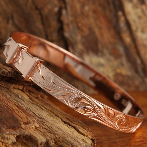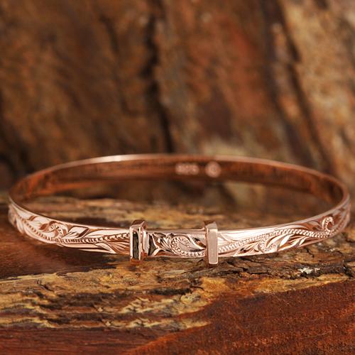 Pink Gold Plated Sterling Silver Handcrafted Scroll Baby Bangle