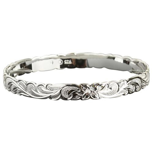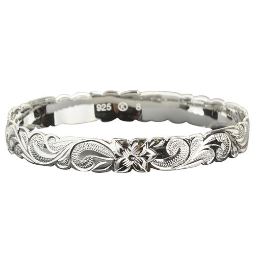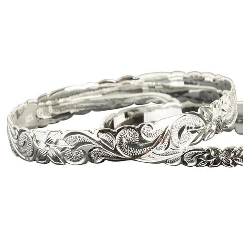 Hawaiian Sterling Silver Bangle Queen Scroll Engraving Cut Out Edge