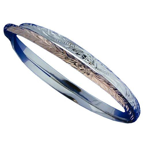 Sterling Silver Hawaiian Bangle 2 in 1 Heirloom Scroll Engraving Bangle Two Tone Pink Gold