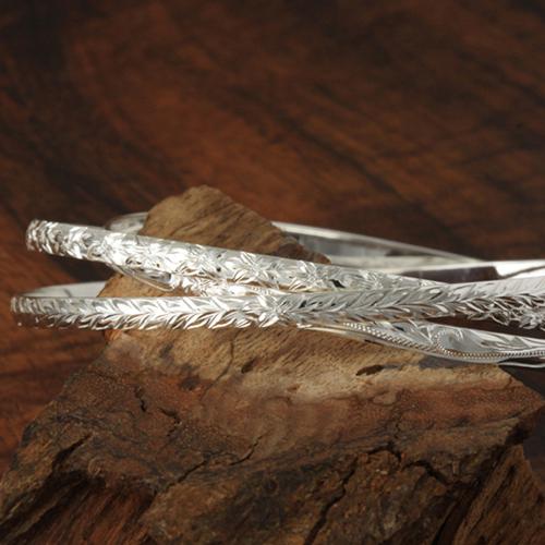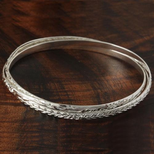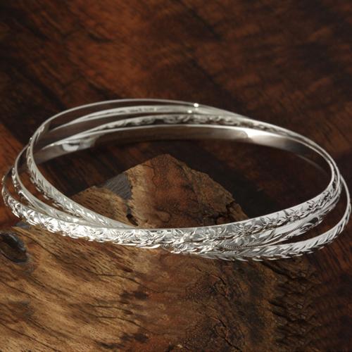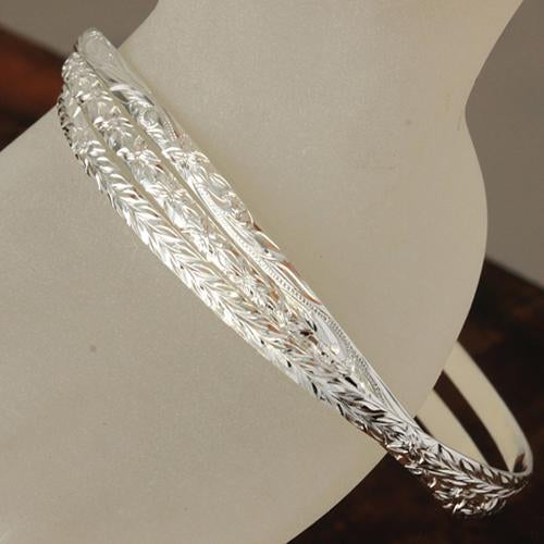 Sterling Silver Hawaiian Bangle 3 in 1 Heirloom Scroll Engraving Bangle Silver Color