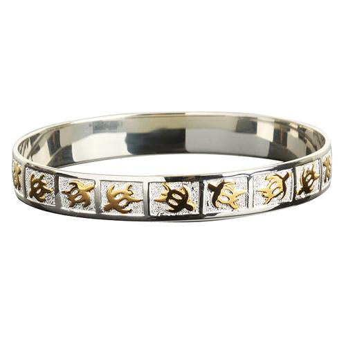 Sterling Silver Honu(Turtle) Hawaiian Bangle Two Tone Yellow Gold