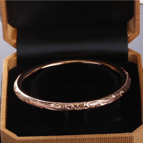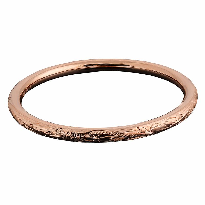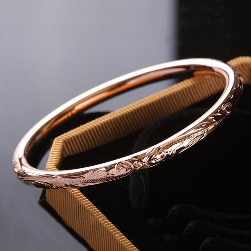 Sterling Silver Scrolling Plumeria Engraving Round Band Bangle Pink Gold Plated 5.5mm