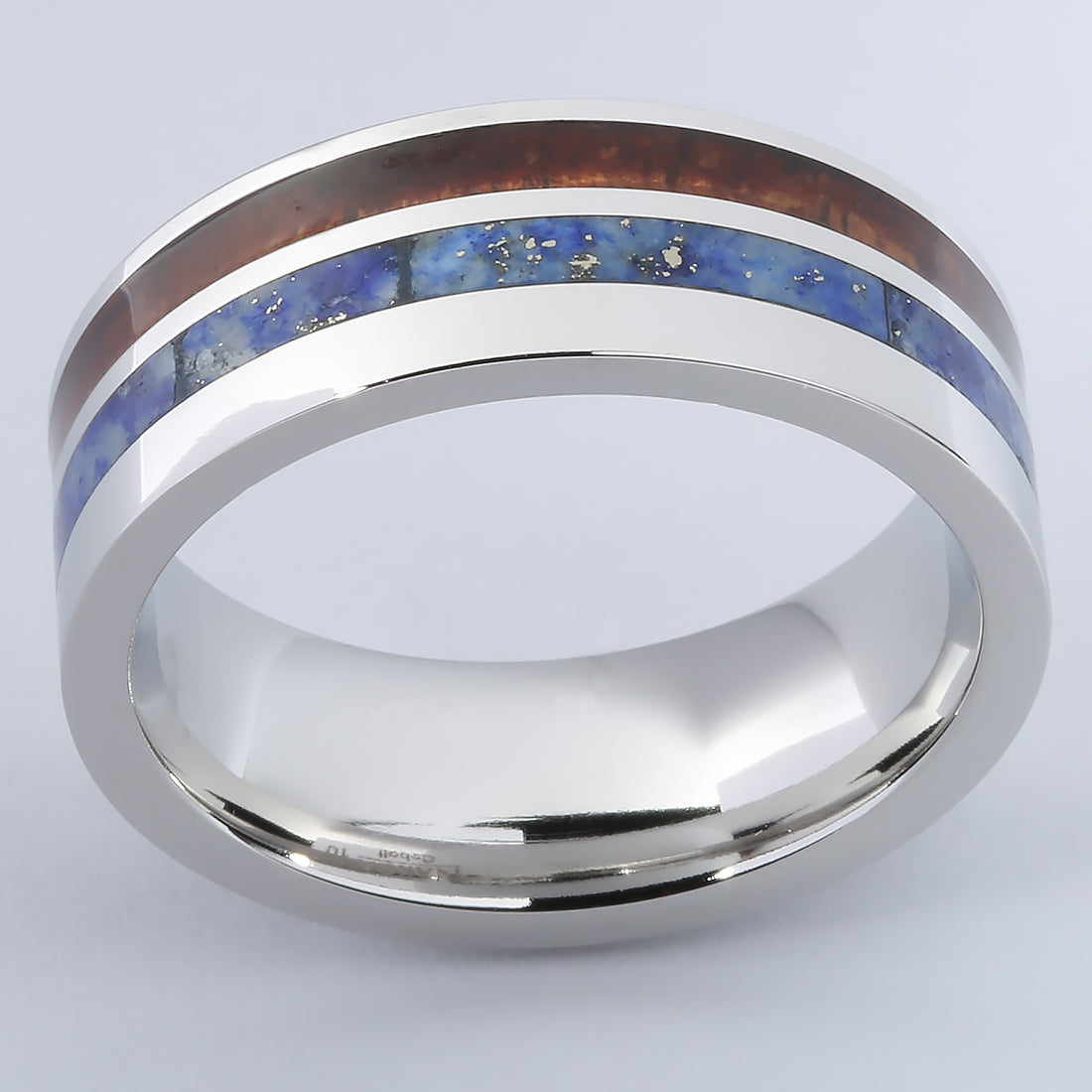Cobalt Lapis Lazuli Wedding Ring with Koa Wood Flat 8mm