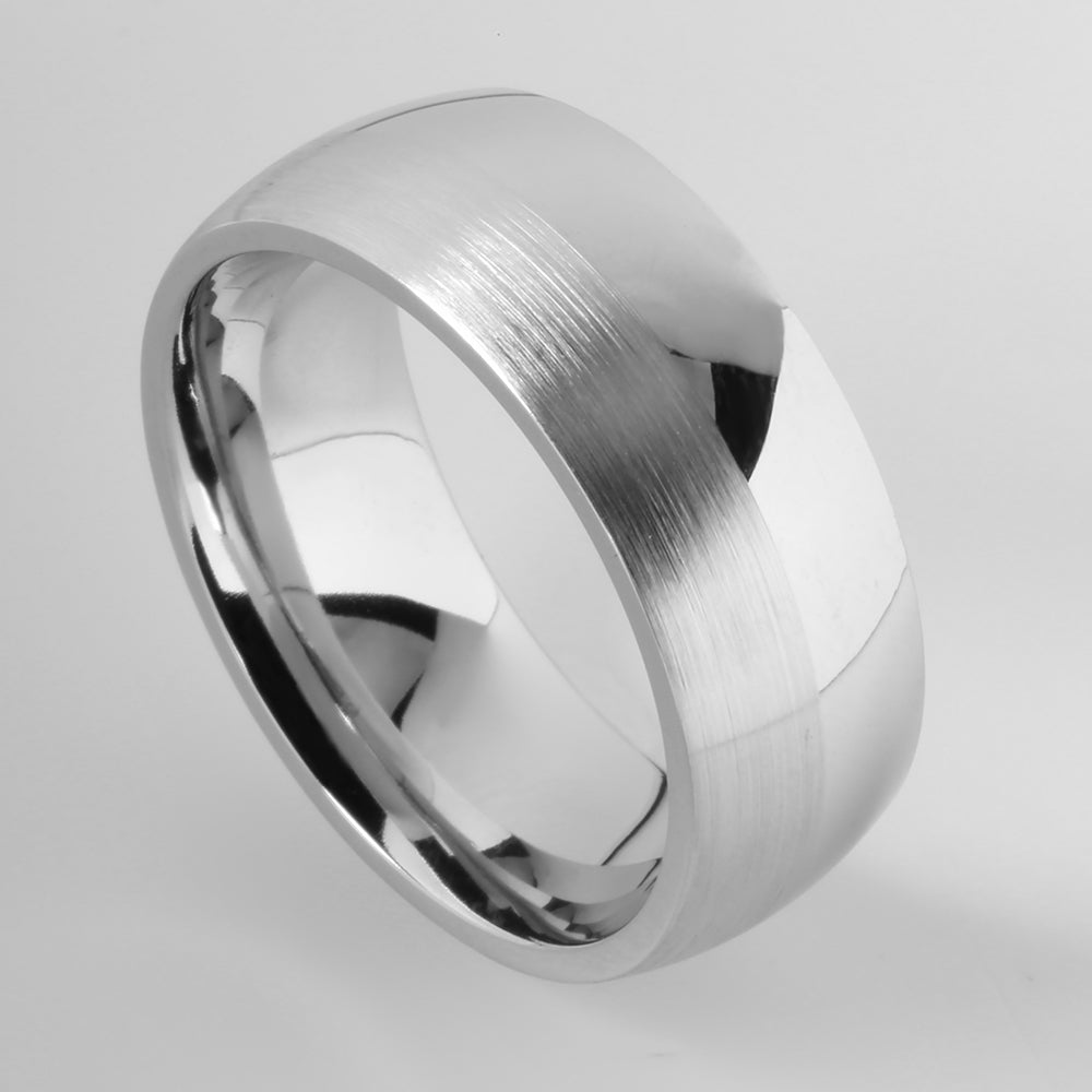 Cobalt Half Brushed/Half High Polish Finished Oval Wedding Ring 8mm