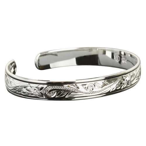 Hawaiian Jewelry Scroll Black Border Cuff Bangle 10mm