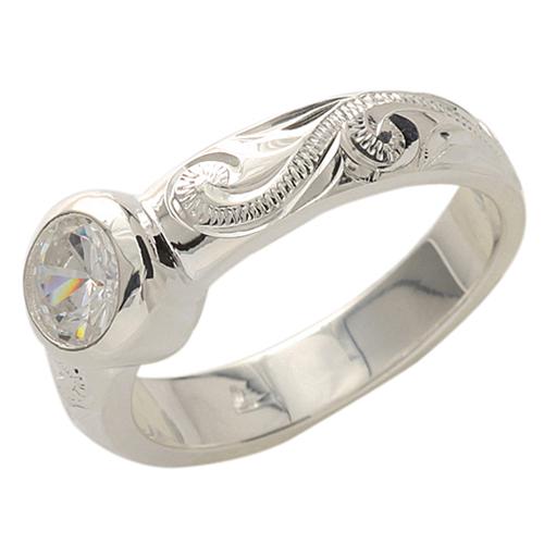Sterling Silver Hawaiian Scroll with CZ Ring