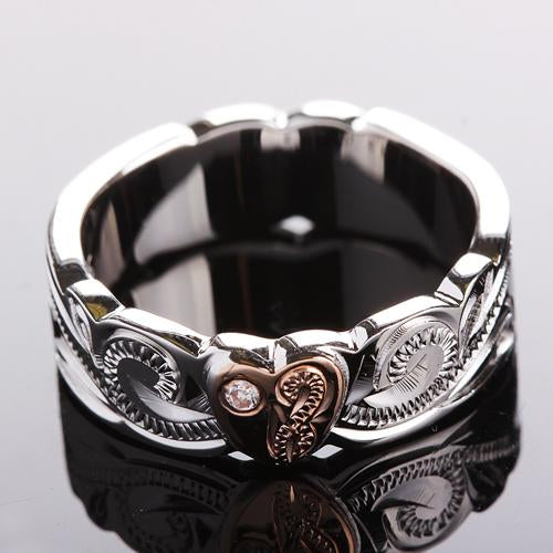 Sterling Silver Rhodium Pink Gold Plated Heart with CZ Cut Out Edge Ring