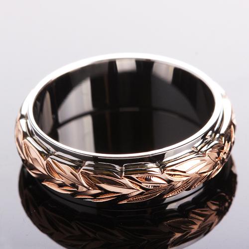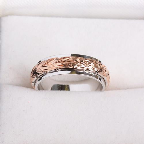 Sterling Silver Two-Tone Pink Gold and Rhodium Plated Maile Leaf Double Ring 6*4mm (Thick)