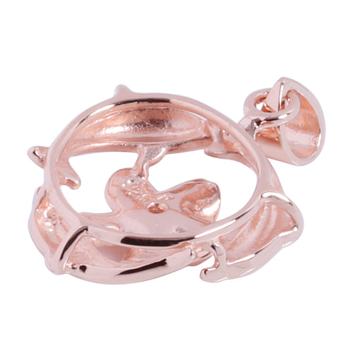 Pink Gold Plated Sterling Silver Swimming Circle Dolphins w/Plumeria Pendant (Chain Sold Separately)