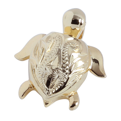 This beautiful yellow gold plated turtle pendant is made with 925 Sterling Silver. Heavy weight with hand-made scroll engraving. 925 Sterling Silver means the silver is alloyed with 92.5% of pure silver and 7.5% of other metal(usually copper). It is the highest concentration of silver allowed in jewelry. Please contact us if you have any question.