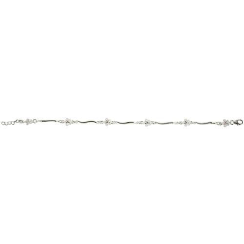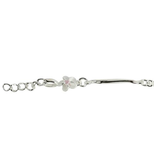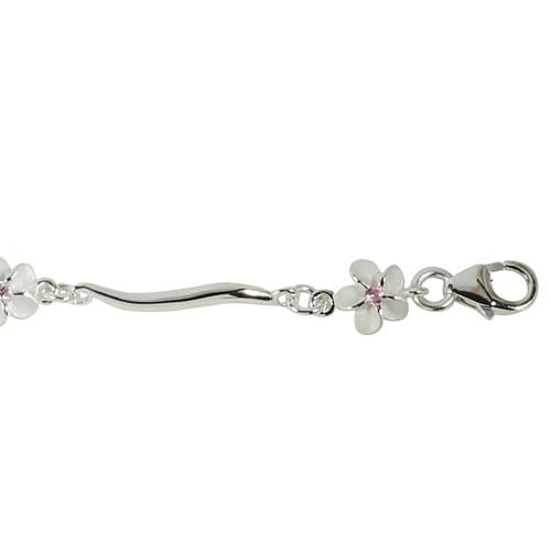 Sterling Silver 6mm Plumeria with Pink CZ Wave Bar Bracelet