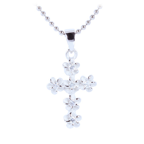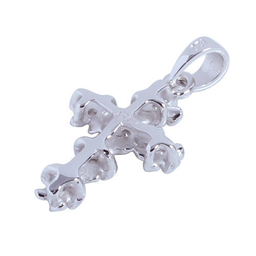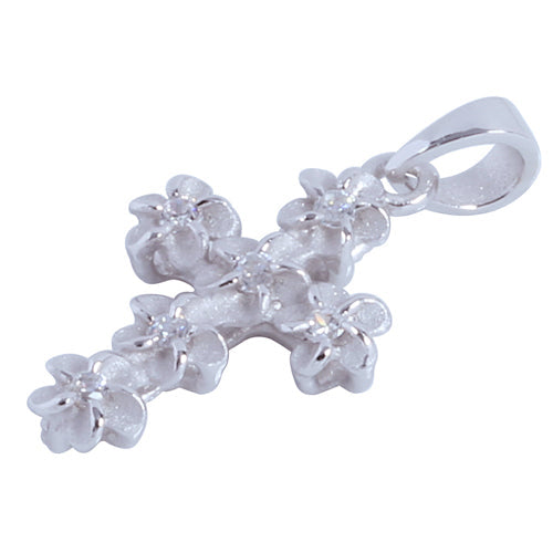 Sterling Silver Rhodium 4mm Plumeria Cross Pendant (Chain Sold Separately)
