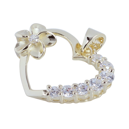 Yellow Gold Plated Sterling Silver Heart with Side Plumeria & CZ Pendant (Chain Sold Separately)