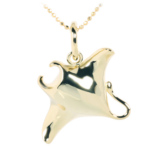 Yellow Gold Plated Sterling Silver Shiny Manta Ray Pendant (Chain Sold Separately)