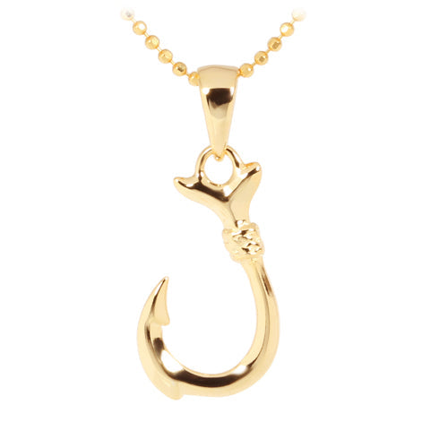 Yellow Gold Plated Sterling Silver Small Fish Hook Pendant (Chain Sold Separately)