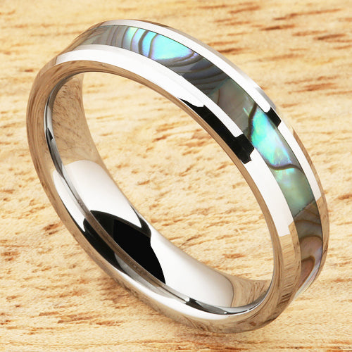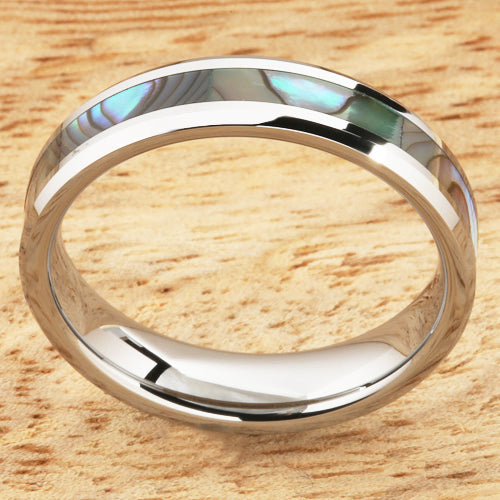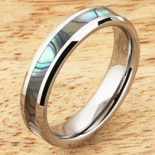 5mm Abalone Shell Inlaid Tungsten Beveled Edge Wedding Ring