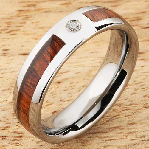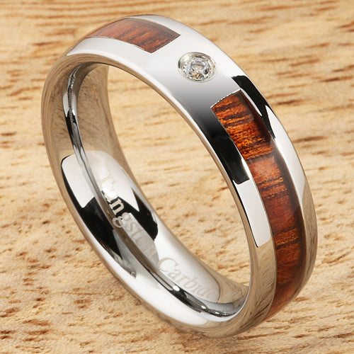 6mm Natural Hawaiian Koa Wood Inlaid Tungsten with CZ Oval Wedding Ring