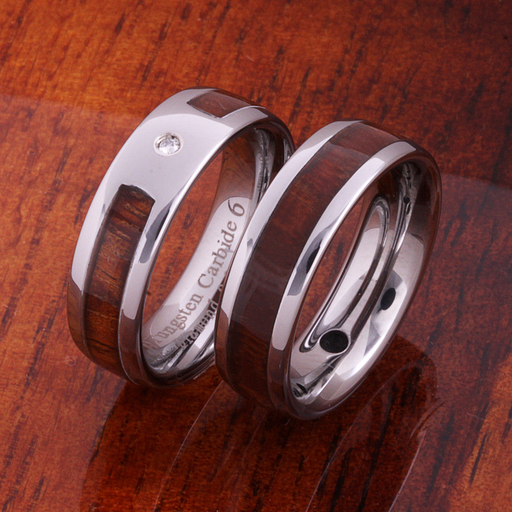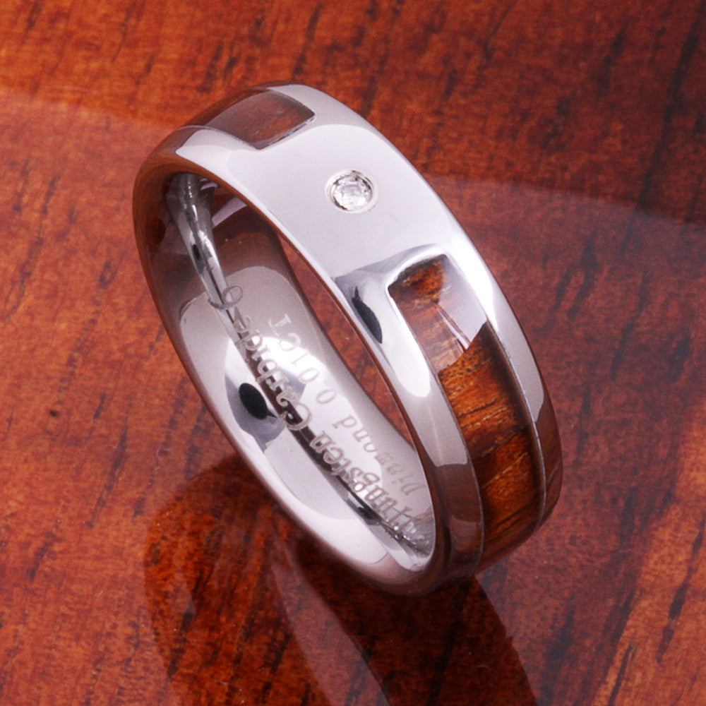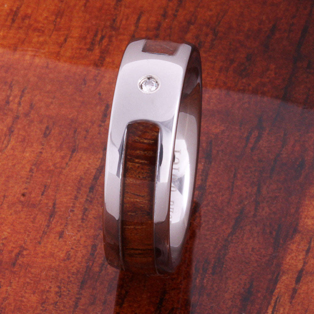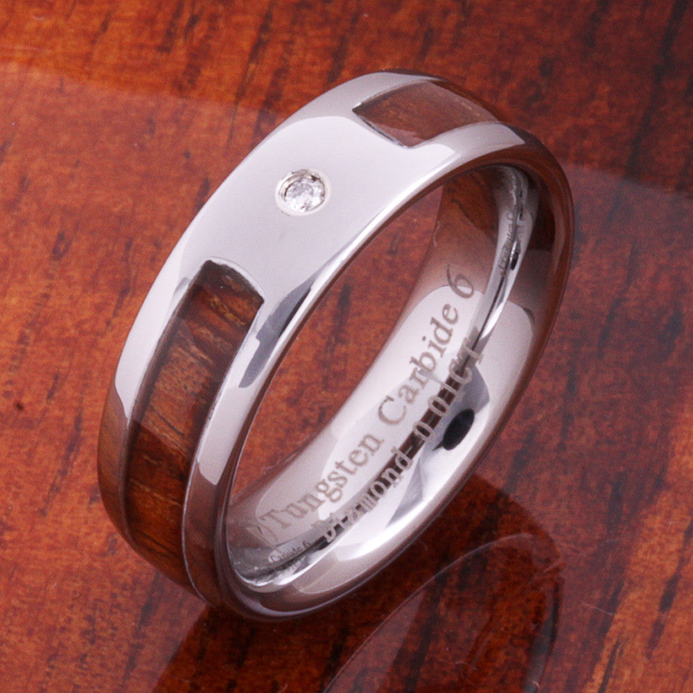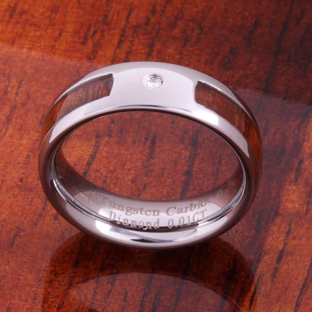 6mm Original Hawaiian Koa Wood with Diamond Inlaid Tungsten Oval Wedding Ring