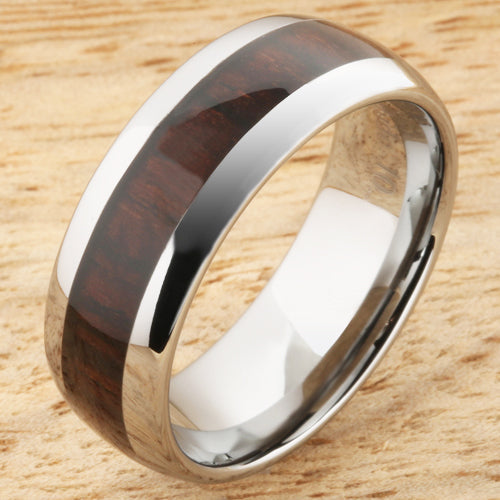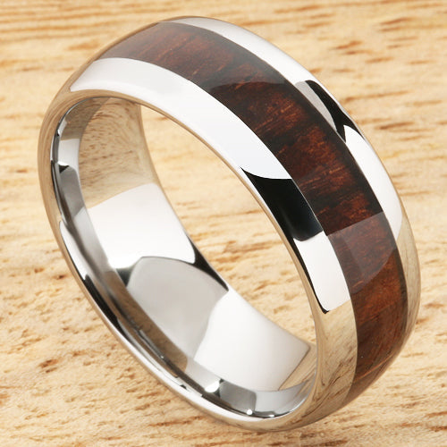 8mm Cocobolo (Red Wood) Inlaid Tungsten Oval Wedding Ring