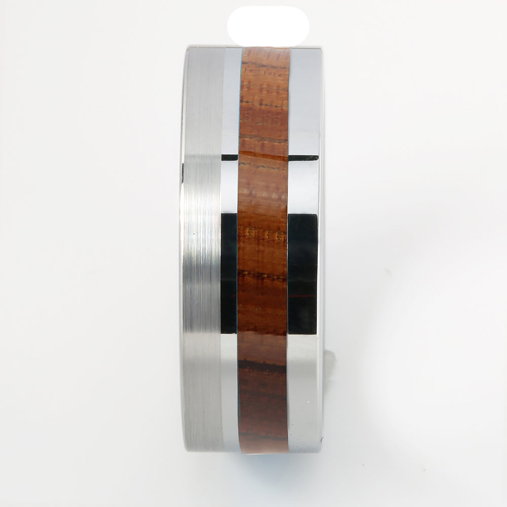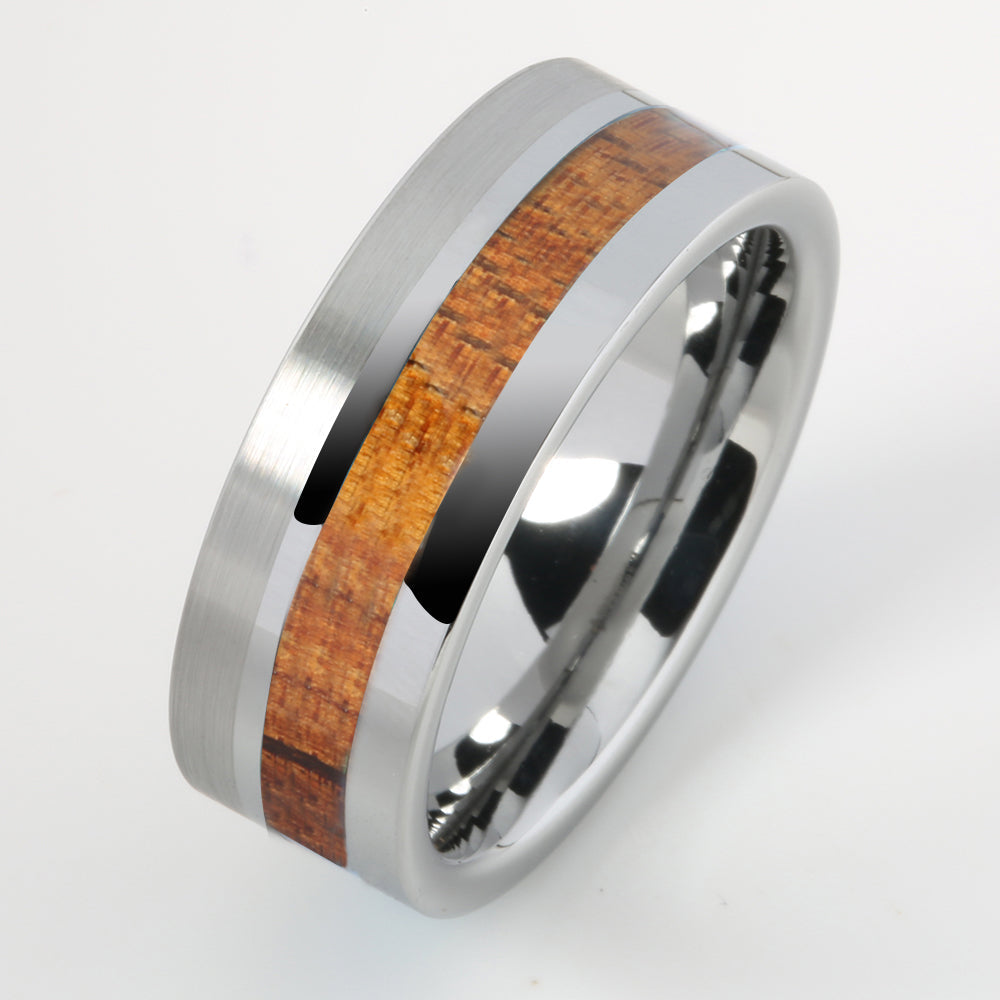 Tungsten Hawaiian Koa Wood Inlaid Flat Brushed Wedding Ring 8mm
