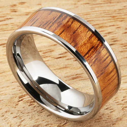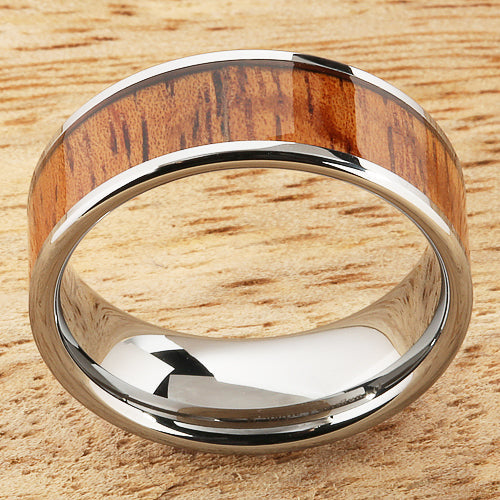 8mm Natural Hawaiian Koa Wood Inlaid Tungsten Flat Wedding Ring