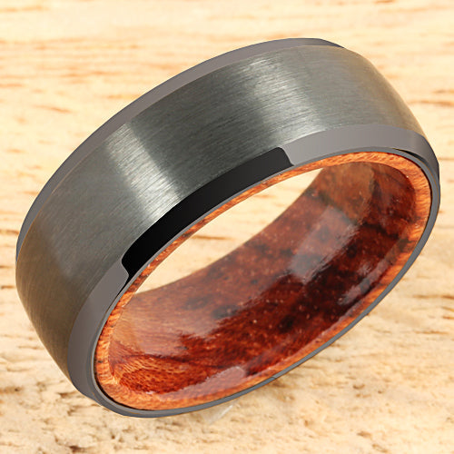 Black Tungsten Koa Wood Double Ring Brush Finished Beveled Edge 8mm