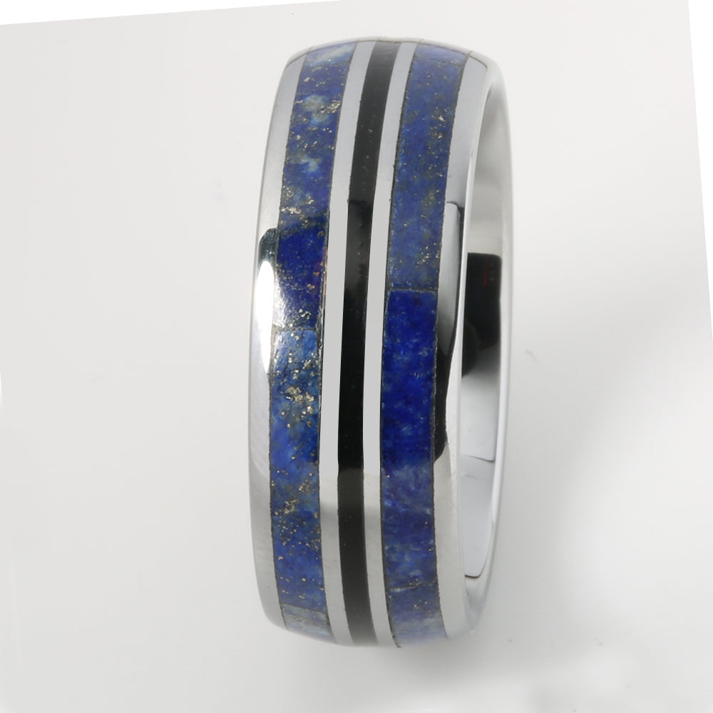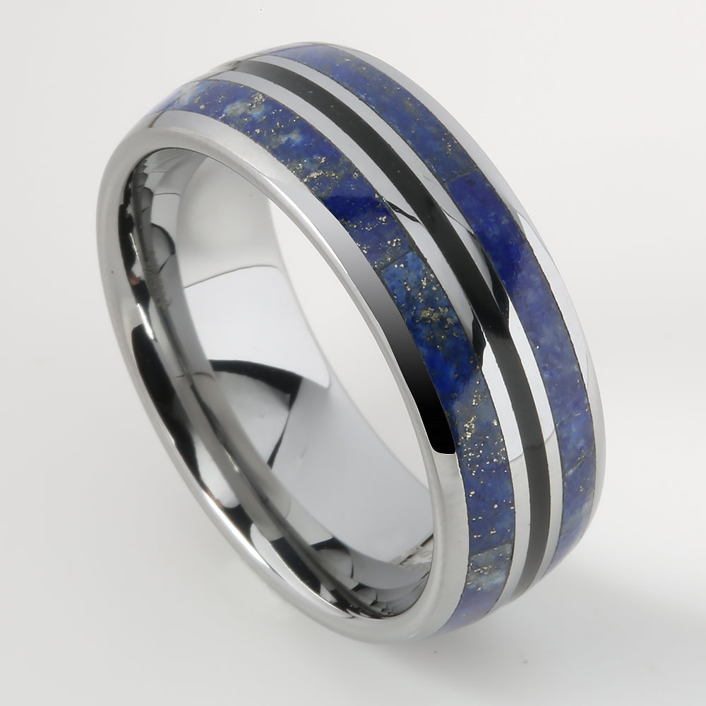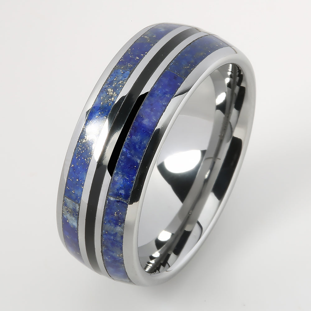 Tungsten Lapis Lazuli Inlaid Triple Row Oval Wedding Ring 8mm