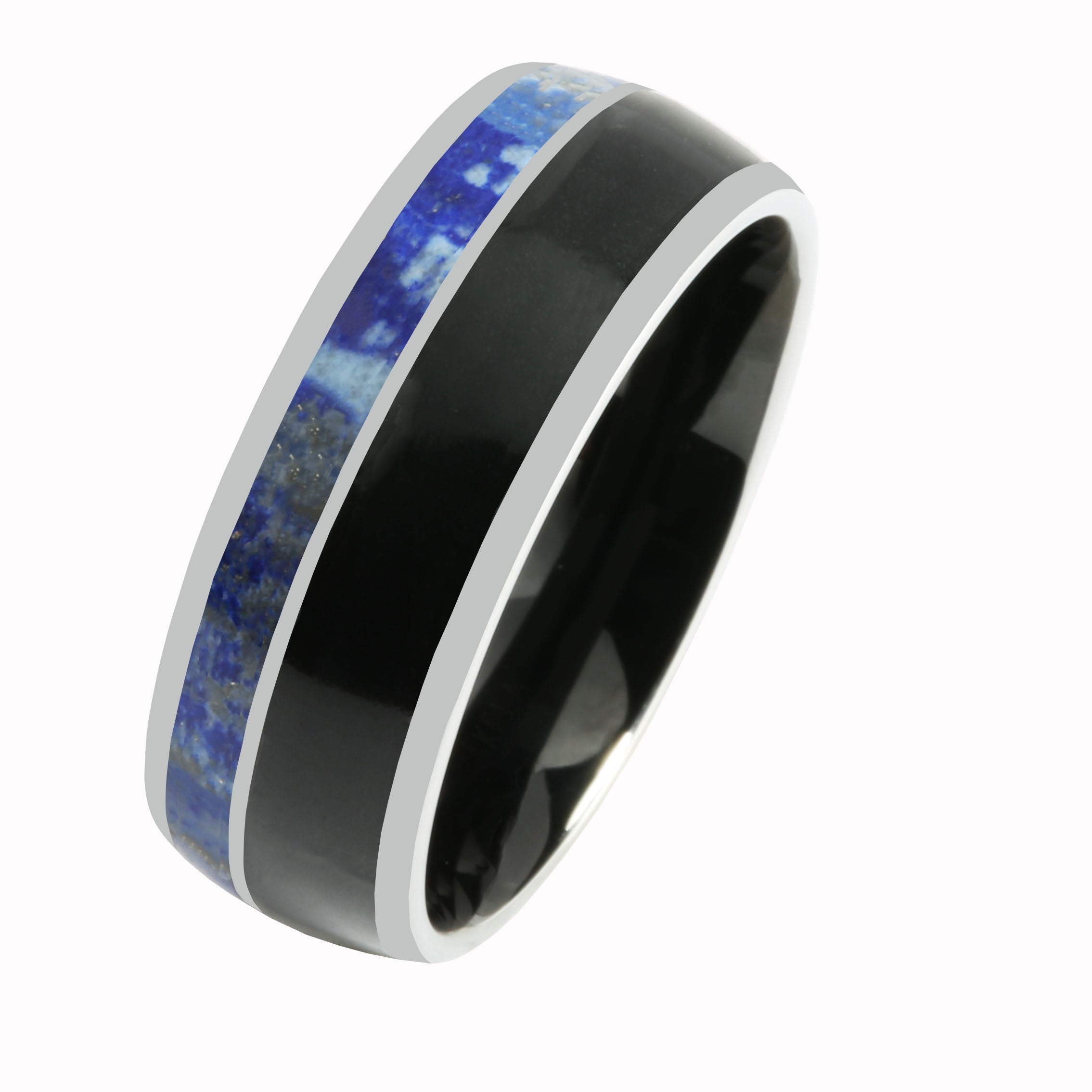 Tungsten Lapis Lazuli and Onyx Inlaid Wedding Ring Barrel 8mm