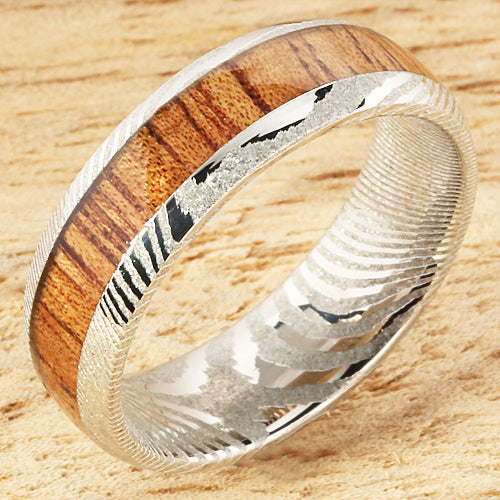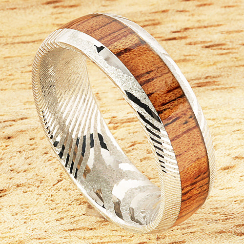 Damascus Koa Wood Inlay Wedding Ring 6mm