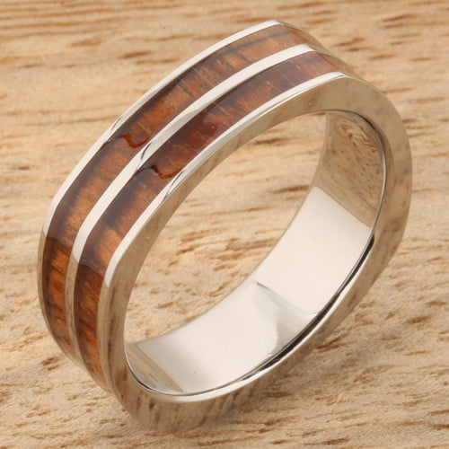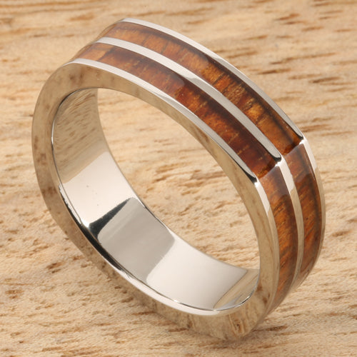 Koa Wood Titanium Wedding Ring Double Row Square 6mm