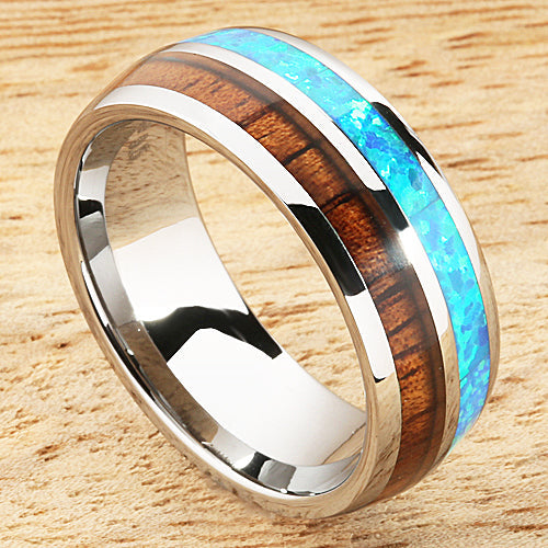 Material: Tungsten, Koa Wood, Blue Opal