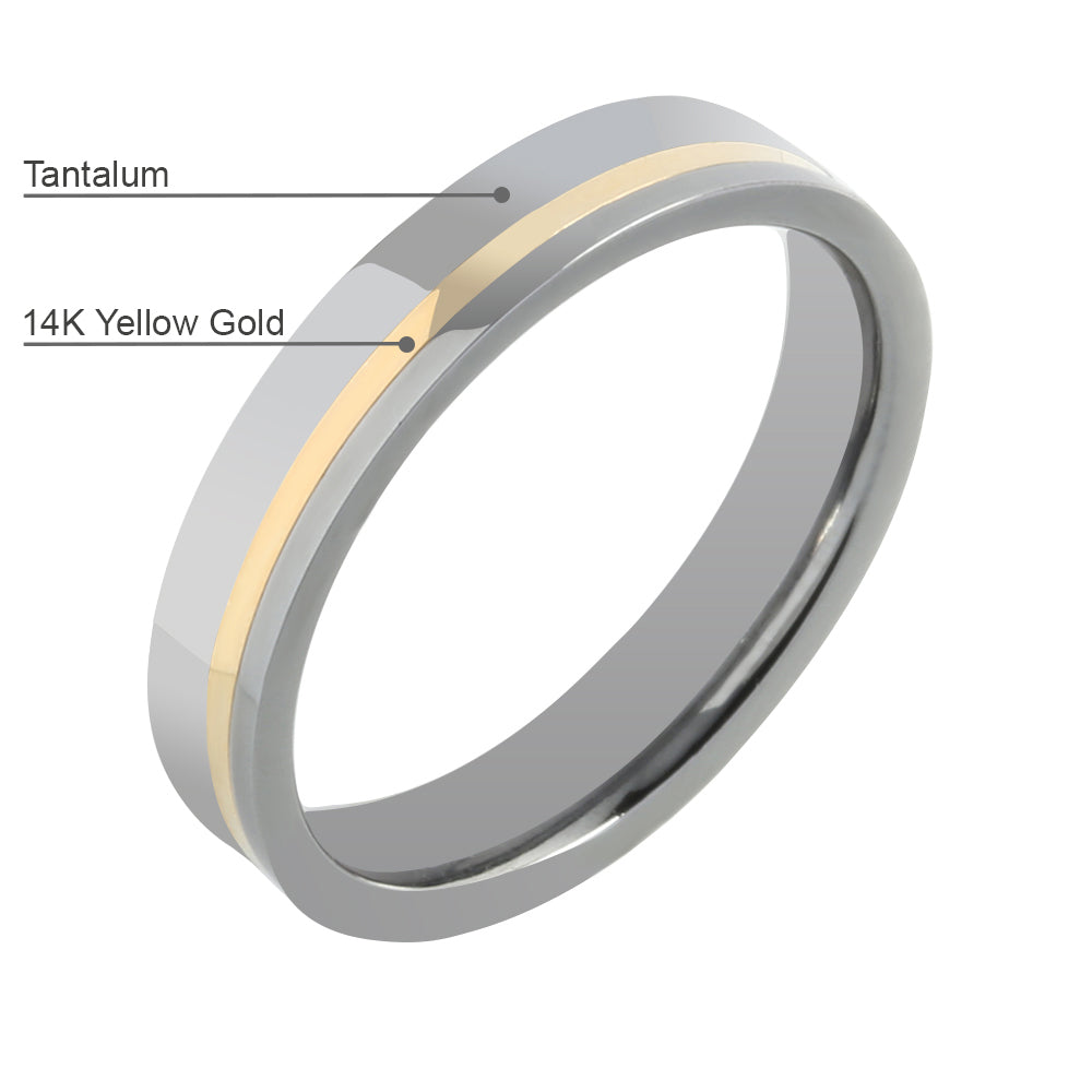 Tantalum with 14K Yellow Gold Inlaid Wedding Ring Flat 4mm