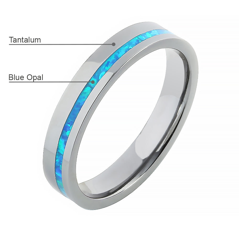 Tantalum with Blue Opal Inlaid Wedding Ring Flat 4mm