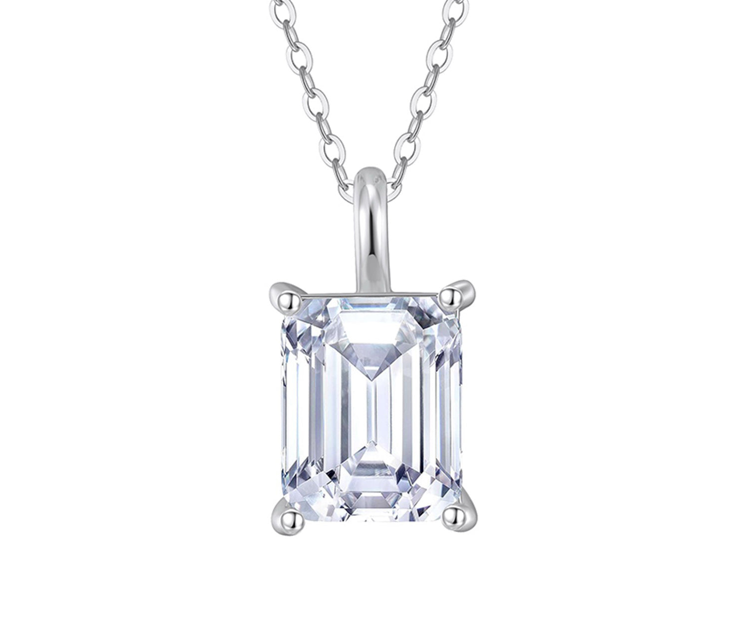 Sterling Silver Moissanite Necklace Emerald Cut 3.00CT MON09-P-7x9