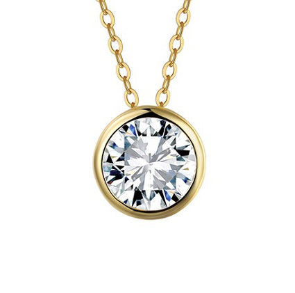 Sterling Silver Moissanite Necklace YG Plated Round 1.00CT MON11-14K-6.5