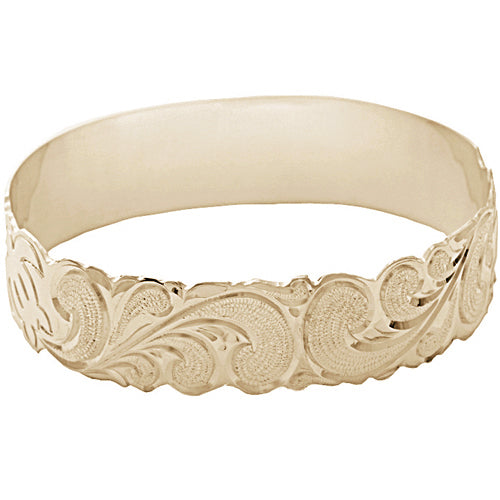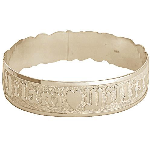 14K Gold Custom-Made Honu (Turtle) Queen Scroll Raise Letter Cut Out Bangle (Thickness 1.25mm)