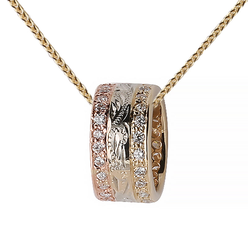 14K Gold Tri-color Hawaiian Heirloom Barrel Pendant 6mm, D-0.245CT G.VS