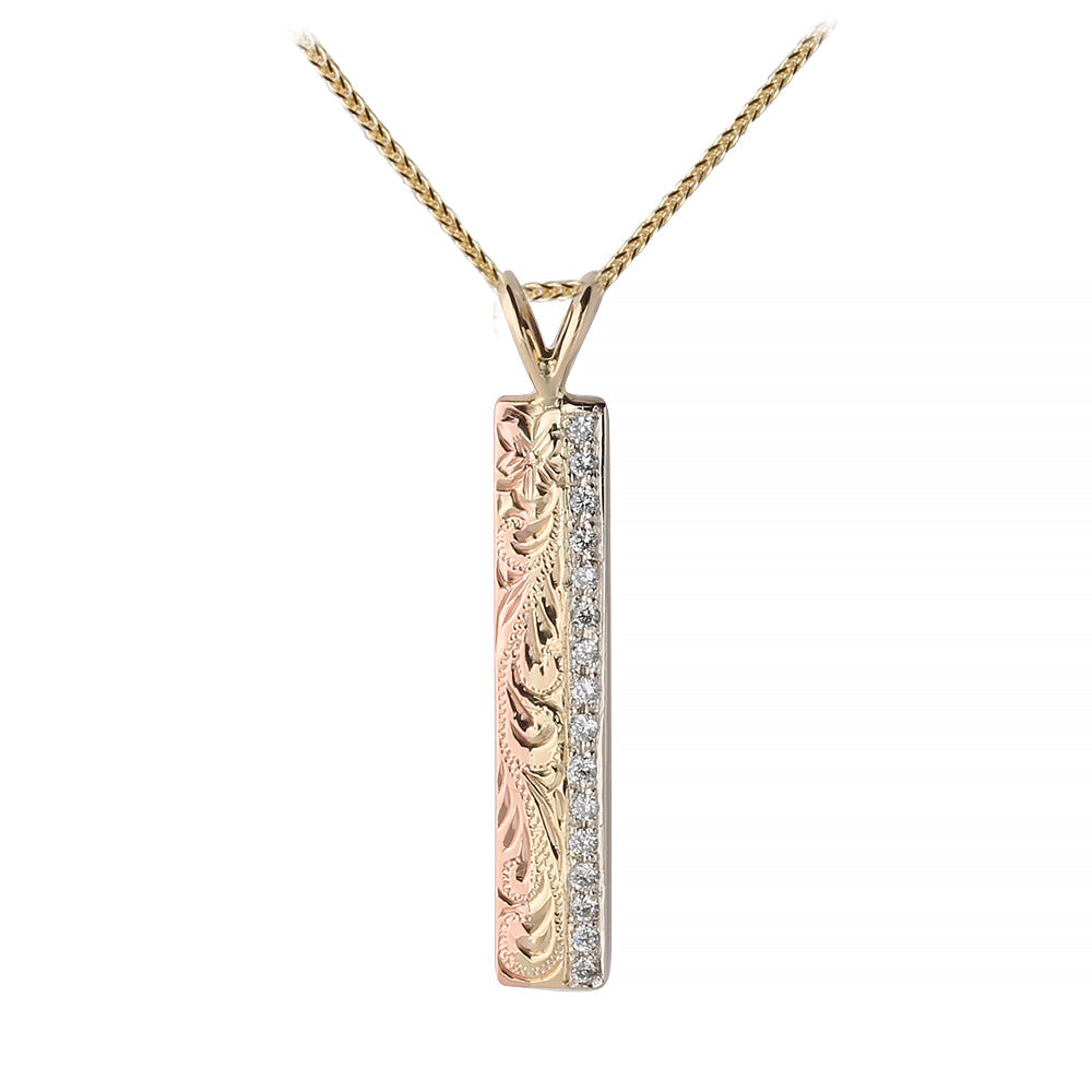 14K Gold Tri-color Hawaiian Heirloom Pendant 6mm Flat/1.5mm, D-0.24CT F.VS