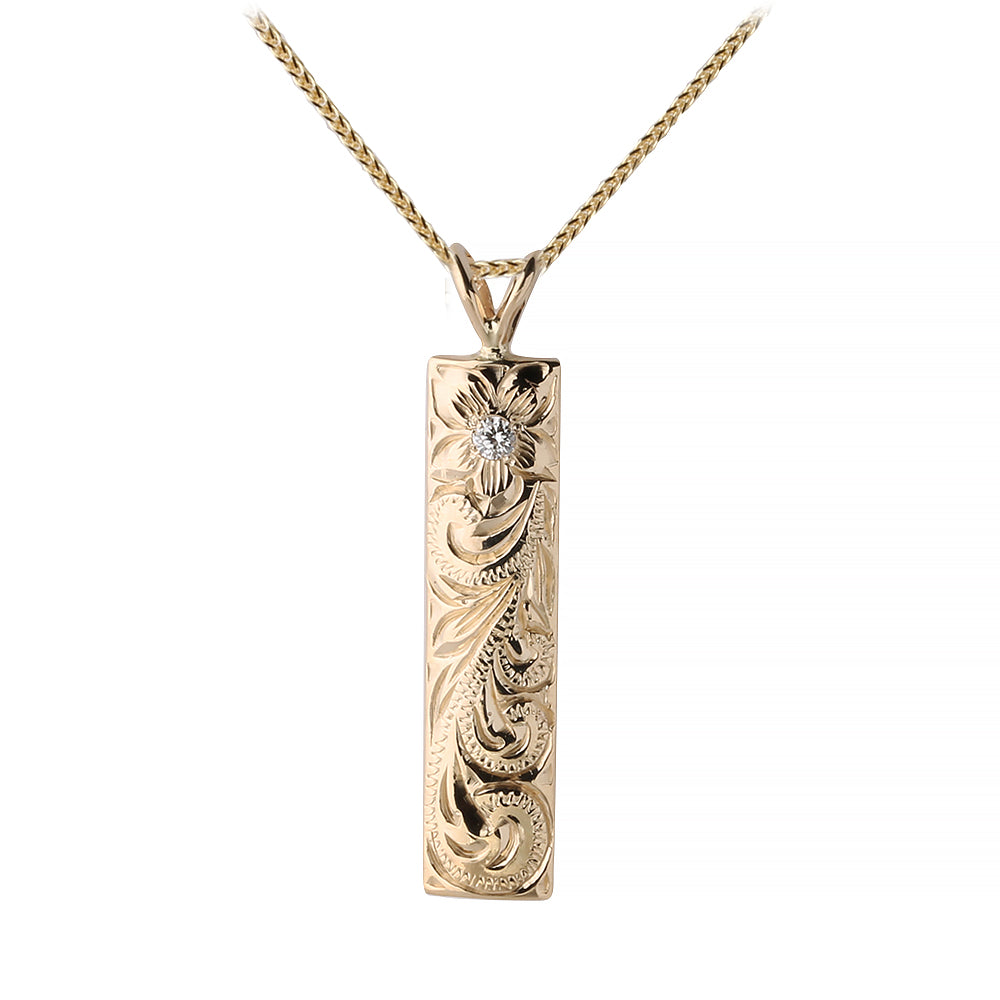 14K Yellow Gold Hawaiian Heirloom Pendant w/1 Diamond 8mm Barrel