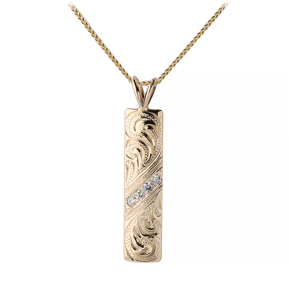 14K Yellow Gold Hawaiian Heirloom Pendant w/4 Diamonds 8mm Barrel