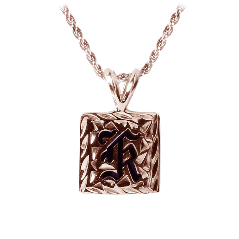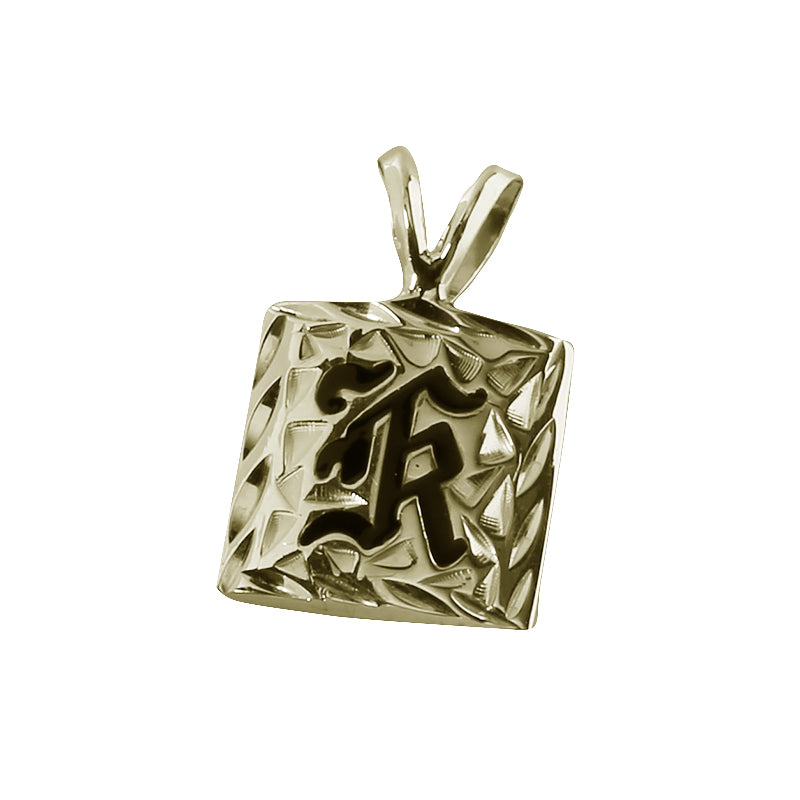 14K Gold Custom-Made Heirloom Initial Pendant Black Enamel Letter Diamond Cut Edge 12mm (Thickness 1.5mm)