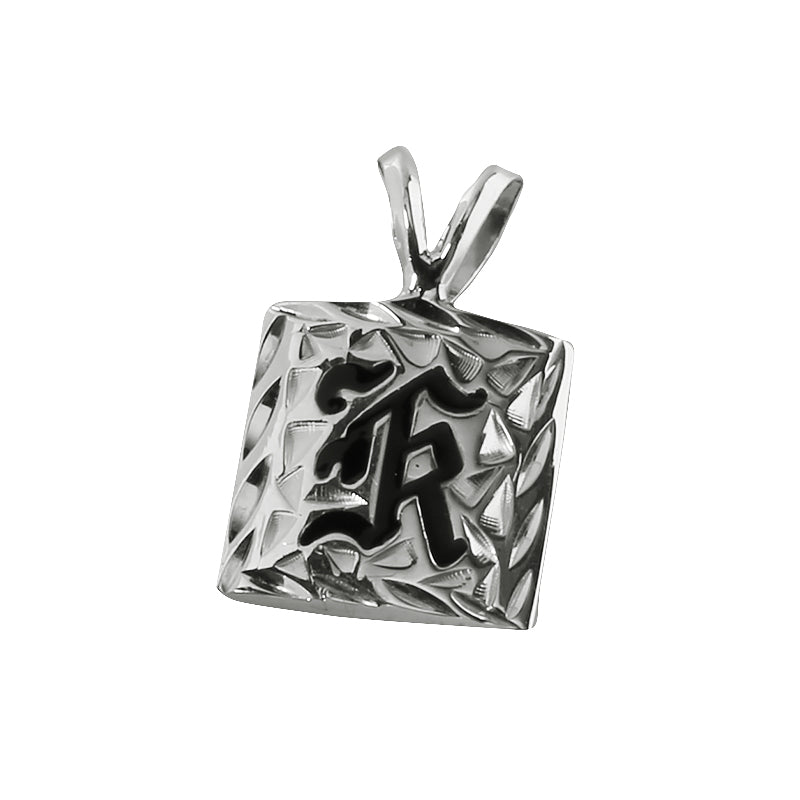 14K Gold Custom-Made Heirloom Initial Pendant Black Enamel Letter Diamond Cut Edge 12mm (Chain Sold Separately) (Thickness 1.5mm Barrel)