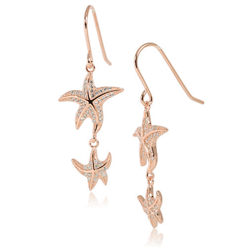 Pink Gold Plated Sterling Silver Double Starfish Pave CZ Hook Earring