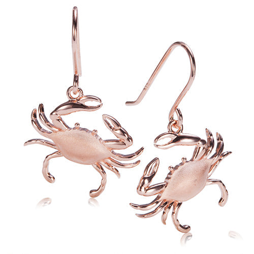 Sterling Silver Pink Gold Plated Moving Crab Hook Earring Sandblast Finished
