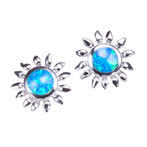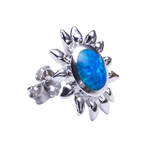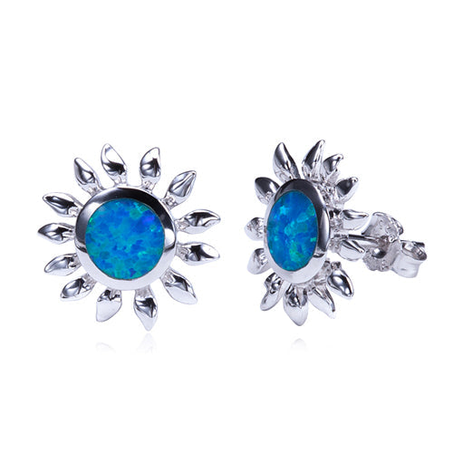 Sunflower Sterling Silver Opal Inlay Earring Post Style