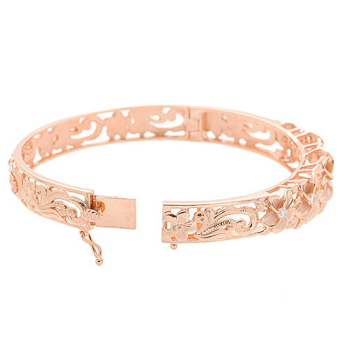 Hawaiian Jewelry 10-15mm 7 Plumeria Rhodium Bangle YG Coating